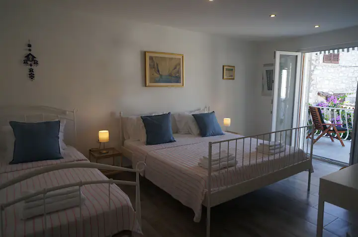We are a family of four who very much enjoyed our stay at the beautiful Stone House located in the old town of Murter. The house was very well equipped: beds were very comfortable, the wi-fi was excellent and the air-conditioning system worked perfectly. When at home, we spent most of our time and ate all our meals in the cozy garden or in the terrace with sea view. The refreshing shower in the garden was well used, especially after our daily cycling tours. There is a small supermarket very close by. Beaches, the downtown area and bigger shops are only a short walk away. We had a great holiday!
